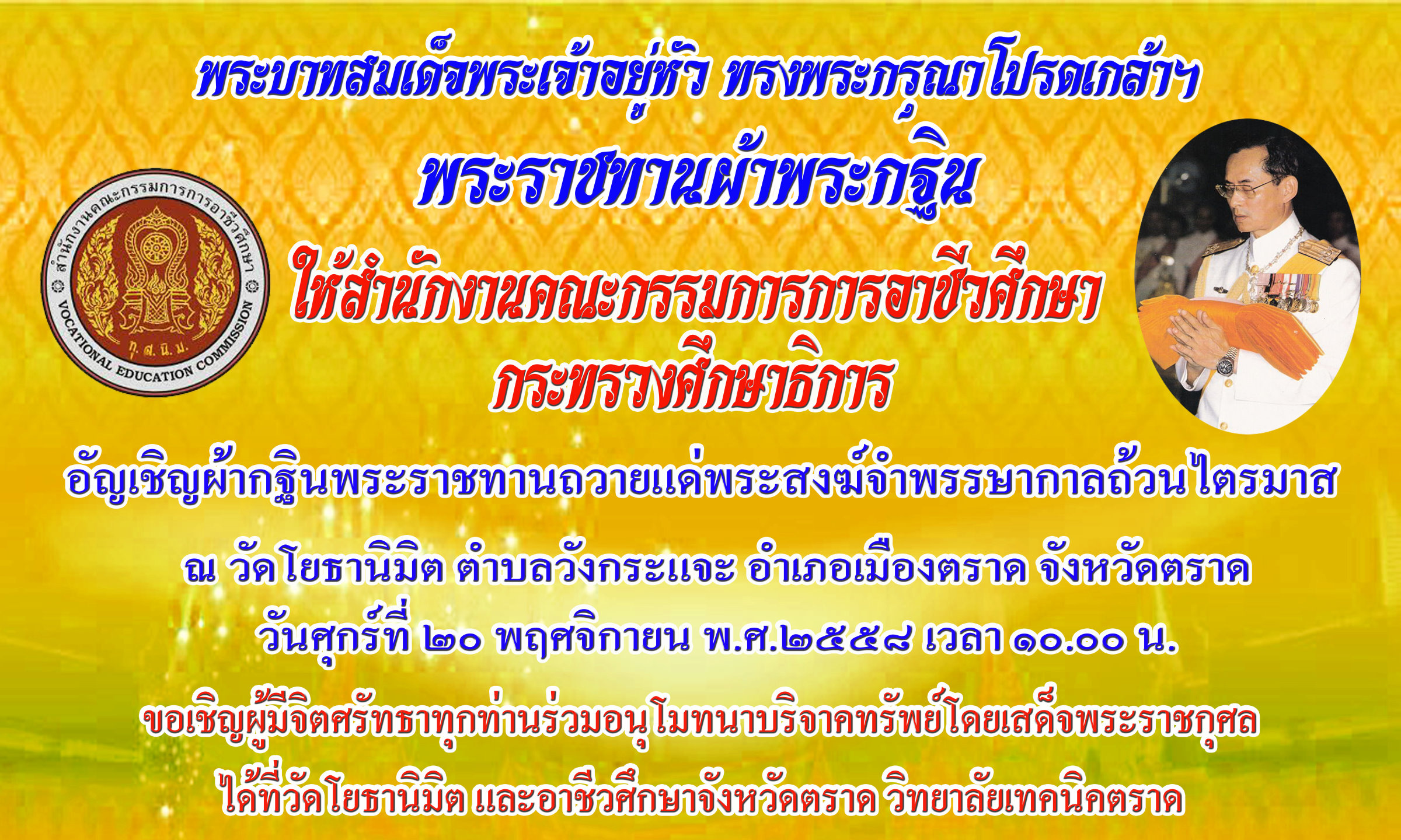 พิธีถวายผ้าพระกฐินพระราชทาน ณ วัดโยธานิมิต อ.เมือง จ.ตราด