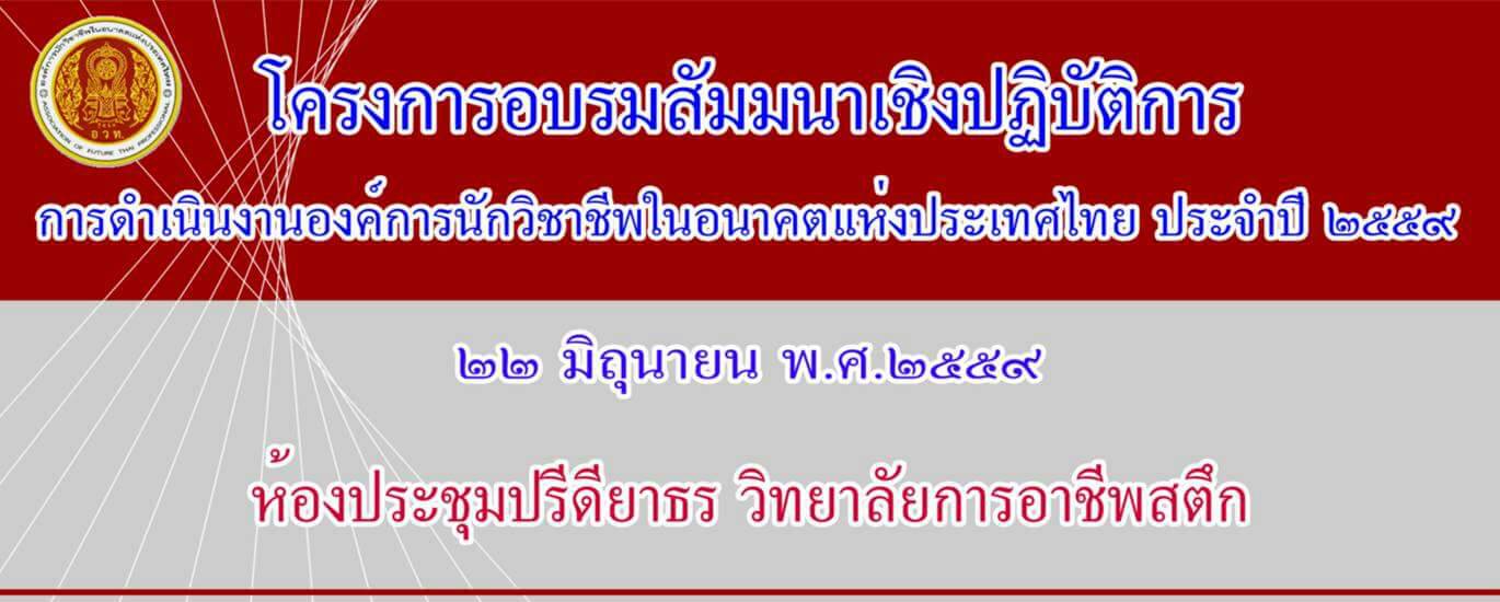 หัวข้อ : โครงการอบรมสัมมนาเชิงปฏิบัติการ การดำเนินงานองค์การนักวิชาชีพในอนาคตแห่งประเทศไทย
