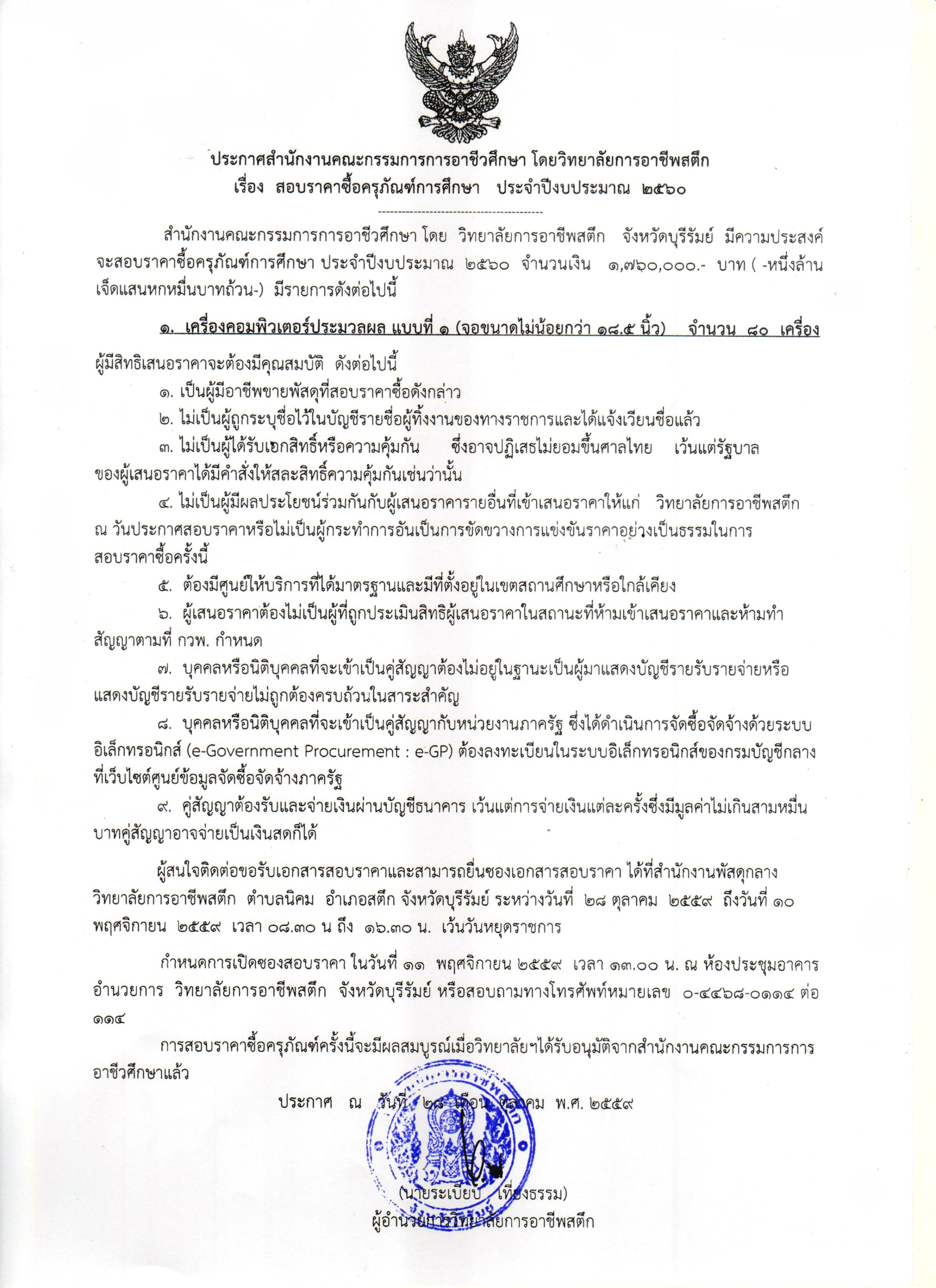 สอบราคาซื้อครุภัณฑ์การศึกษา ประจำปีงบประมาณ 2560